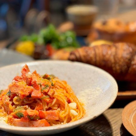 サラダはもちろん、パスタも60gのミニサイズなのでパンと一緒に楽しめるサイズ感です。