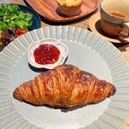 特に、「天使のクロワッサン」は、フランス産の高品質基準を満たすAOPバターを使用した贅沢なクロワッサンなんだとか。 外はサクサク、中はジュワーッとバターが溶け出して、悶絶する美味しさ。