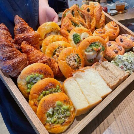 名物・純生食パンOneHundredや天使のクロワッサンや、食事系のパン、デザートパンまで。さらにこの日はデザートとしてティラミスもチョイス可能!