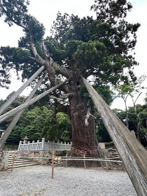 そして、玉若酢命神社で最も異彩を放っていたのが参道脇にそびえ立つ八百杉(やおすぎ)。推定樹齢はなんと約2000年! ガイドブックで予習していたものの、いざ目の前にしてみるとその迫力たるや。静かに立ち止まり、ただただ眺めているだけでも、生命力が湧き出るようなエネルギーを感じとれるはずです。
