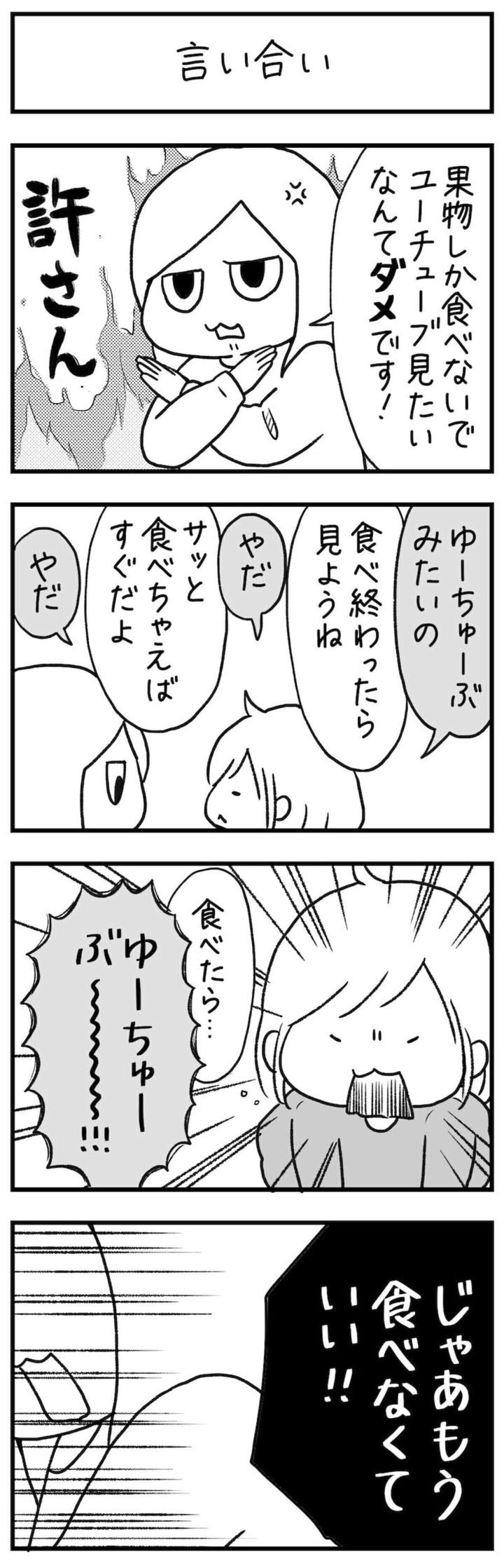 「何も食べないよりマシ」と思っていたやき子さんですが、そのうち、果物を食べたら動画をせがむようになってしまいました。
