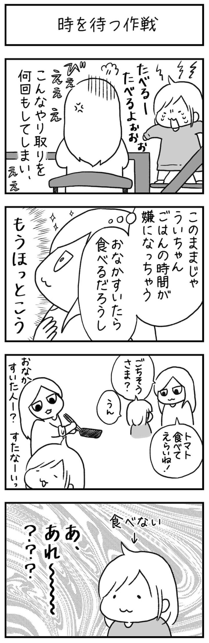 このままでは娘が食事の時間が嫌いになってしまうと思ったやき子さんは、放っておくことにしましたが、それでも食事をしないういちゃん。