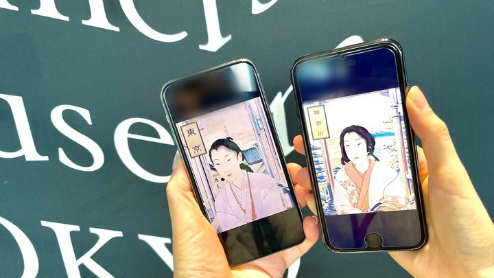 AI北斎は「はいっ…はいっ…はいっ…」とゆるいかけ声をかけながら刷ってくれるのがなんとも味わい深くユニーク。出身地を聞いてくれるので、その土地の名所が背景に描かれるのも面白いです。北斎風の東京タワー、レアですよね。できあがった画像はQRコードでダウンロードOK。待ち受けにしたりSNSでシェアしたりしたくなります。