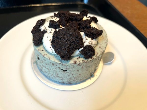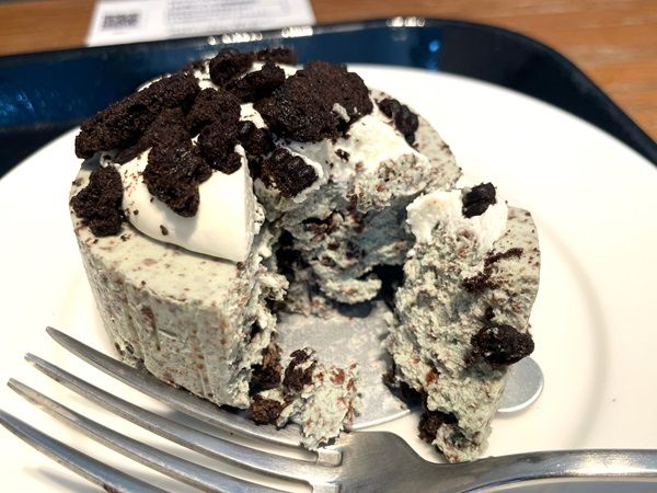 一方でトッピングと1番下にあるザクザク食感のココアクッキーの存在感はすごい! ミント風味を味わいつつ、爽やかなチーズケーキの美味しさとココアクッキーの香ばしい食感が同時に楽しめました。見た目以上に大人が食べやすい味に仕上がっていますよ。