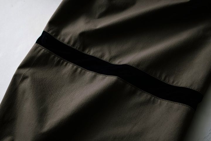 夏にサロペットは暑いと思うかもしれませんが、その辺りもコチラはクリアしています。まず、夏用とオールシーズン用の展開になっていて、前者はベージュとブラックの2色。しかもヒザ裏がメッシュ仕様になっているので、夏でもムレることなく快適なのです。