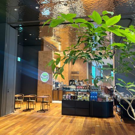 渋谷アクシュを歩いていて印象的だったのは、各所に緑が置かれ、ちょっと休めたり、ほっと一息ついたりできるスペースが設けられていること。3階のオフィスエントランス前にはカフェも。