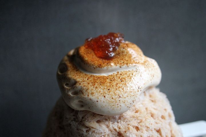 食べると紅茶の香りが口いっぱいに広がり、紅茶好きにはたまらない味。氷はふわっとしていて、口に入れた瞬間にスッと溶けていきます。中には紅茶クリームやクルミも入っていて、スプーンを口に運ぶごとに味わいや食感の変化が楽しめるのも◎。