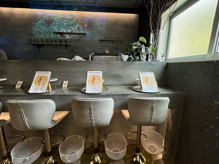 座席はカウンター席のみ。昨年はグループでの来店が多かったようですが、最近はおひとりさまの来店も増えているとのことです。大きな鏡の前の席では、最近SNSでよく見かける鏡に映る自分とドリンクやスイーツを自撮りするのもよさそうです。