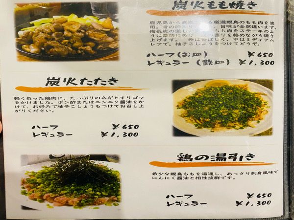 炭火もも焼き、たたきなど豊富な鶏メニュー