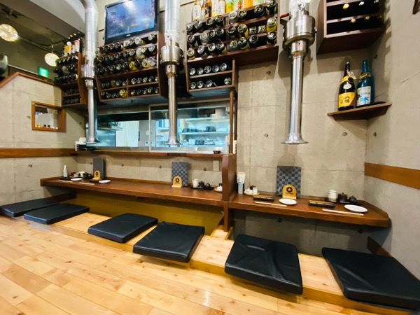 店内は靴を脱いで上がるスタイルでした。 テーブル席、カウンター席とも全て掘り炬燵。座布団より足が楽ちんなので個人的には高ポイント!