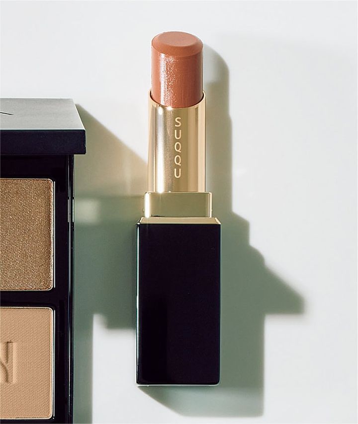 唇の上で水面のように揺らぎ艶めくシナモンベージュ。モイスチャー グレイズ リップスティック 01 ¥5,830(SUQQU)