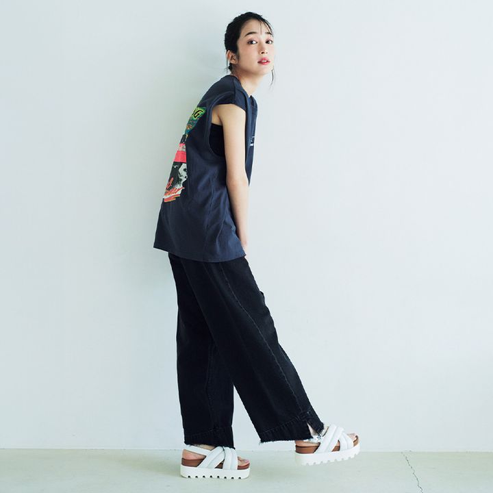 ▶︎太めパンツをきれいめに見せる「サンダル&ぺたんこ靴」8コーデ!