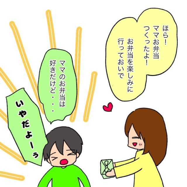 「ママのお弁当は好きだけど・・いやだよーっ!!」