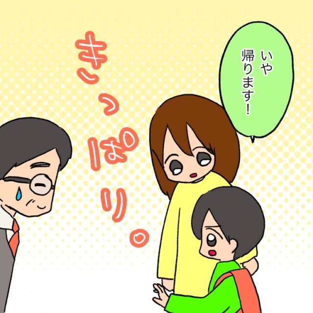 [2]「いや帰ります!」校長先生にも動じない意志の強さにタジタジ(汗)遠足に行かない息子|メイの育児漫画