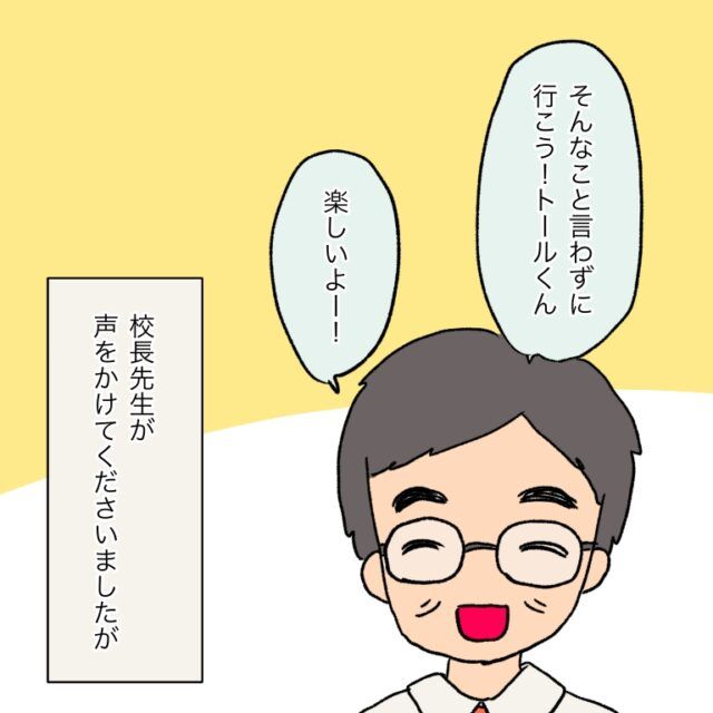 3. [2]「いや帰ります!」校長先生にも動じない意志の強さにタジタジ(汗)遠足に行かない息子|メイの育児漫画