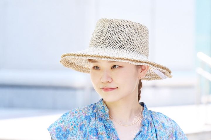清涼感のある爽やかなブルーにハットを合わせて、夏らしいコーディネートに仕上げたという、黒井さん。