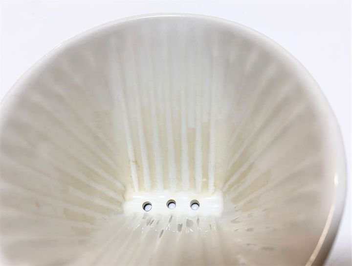 15年分の着色汚れがついたコーヒードリッパーは、30分のオキシ漬けでかなり白くなりました。でも、アップで見てみるとまだ汚れが気になります。