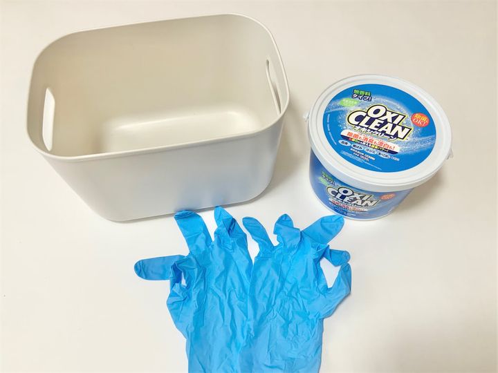 ・オキシクリーンは金属に使用すると変色する恐れがあるため、金属製ではない容器を使ってください。