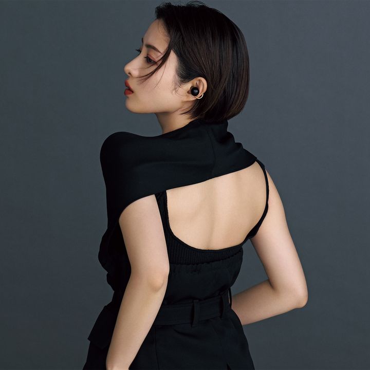 トップス¥169,400パンツ¥143,000(ともにボッター/イザ)イヤーカフ¥20,900(フミエ タナカ/ドール)キャミソール(スタイリスト私物)
