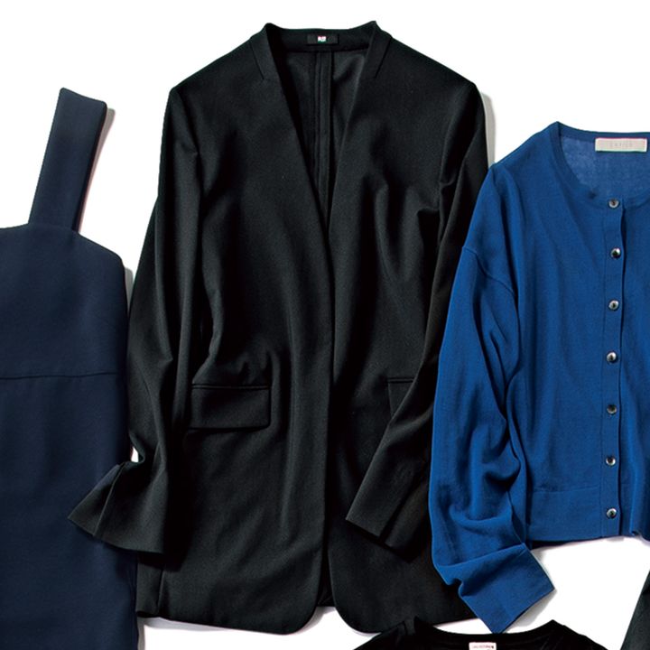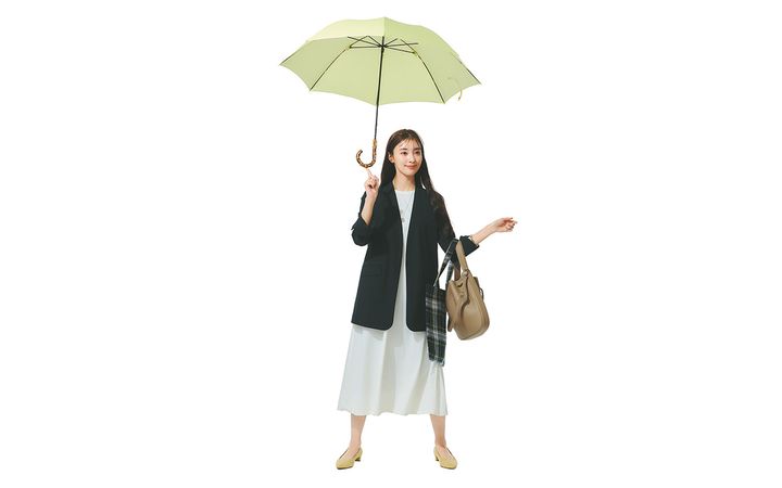 ストレッチ素材でストレスなく着られるジャケットは洗濯機で洗える強者。UVカット機能も心強い。長めの着丈が今の気分。ジャケット¥20,000(PLST)