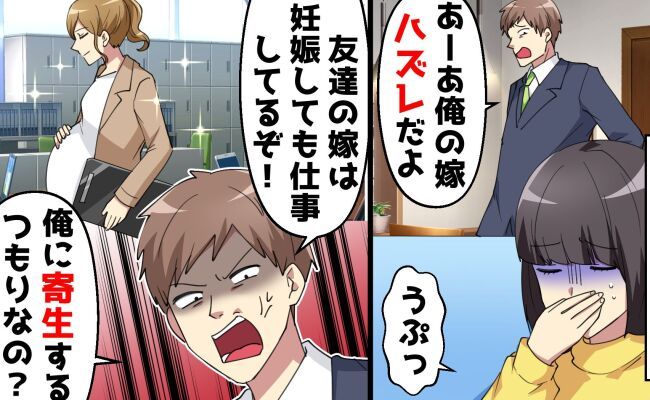「つわりって言うけど、俺の親友の妻は働きながら家事も完璧らしいぞ? つわりなんて家事をサボるための言い訳だろ」と追い詰め続けてきます。