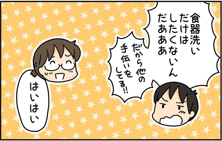 とにかくやりたくないらしいので、食器洗いだけはお願いしないようにしています。