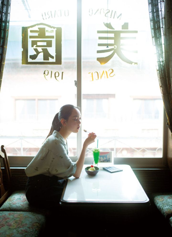 小樽駅近くのアーケード、都通り。ガラスに大きく描かれた店名が目印の『アイスクリームパーラー美園』で、おやつの時間を。大正8(1919)年に創業し、北海道で初めてアイスクリームを製造した老舗で注文したのは、アイスクリームとクリームソフトが一皿に盛られた「ハーフ&ハーフ」(¥600)。添加物を加えず、素材は牛乳、卵、蜂蜜が中心。甘さは程よく喉越しが爽やかで、本来のアイスクリームの味を知った。北海道小樽市稲穂2−12−5 0134−22−9043 12:00~16:00 火水休 シャツ¥232,100(ビズビム/エフ アイ エル オモテサンドウ 03−5778−3259) デニムパンツ¥22,000(ヤエカ/ヤエカ アパートメント ストア 03−5708−5586) その他スタイリスト私物