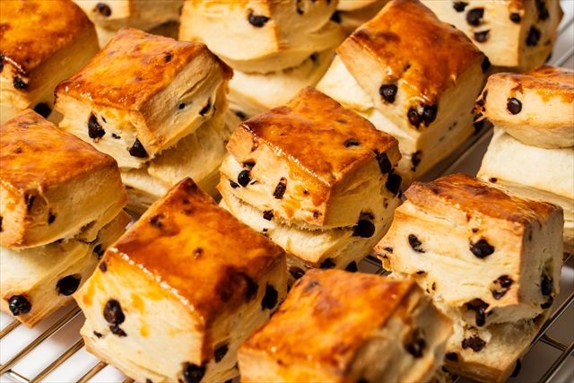 ラムの風味を存分に感じることができる「ラムレーズンホワイトチョコスコーン」。風味のいいジャマイカ産のラム酒を使っているのだそう。