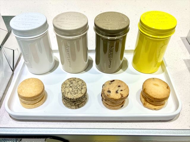 固定フレーバーは、プレーン、アールグレイ、チョコレートチップの3種類。ちなみにオープンから約3カ月時点での一番人気は、アールグレイとのことです。はっきりとしたアールグレイの味と、おしゃれな缶の色が人気の理由なのだとか。