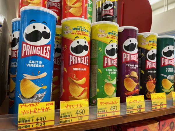 プリングルズの種類も豊富。私のおすすめは水色のパッケージのソルト&ビネガー!塩味のポテトチップスをビネガーがひき立てます。25年以上前からの大ファンです。