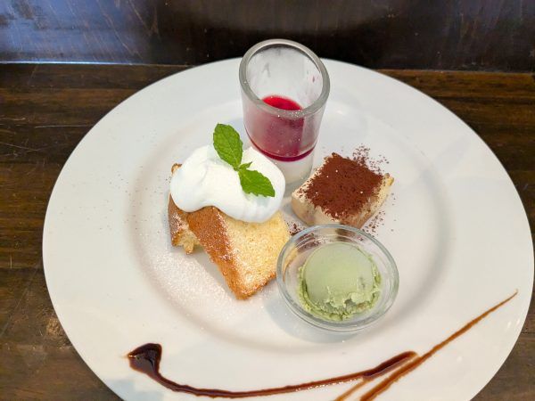 メインでお腹いっぱいになりましたがデザートは別腹です。ふわっふわなシフォンケーキ、ベリーソースのパンナコッタ、大好きなピスタチオのジェラート、ティラミスは甘さ控えめでしっとりスポンジがたまりません。大大大満足!ごちそうさまでした。