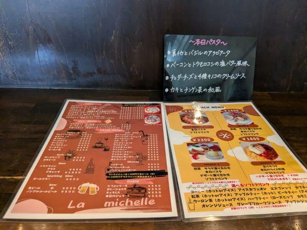 こちらがランチタイムのメニュー。本日のパスタの内容は2週間毎に変わるそうです。何度行っても飽きないですね。