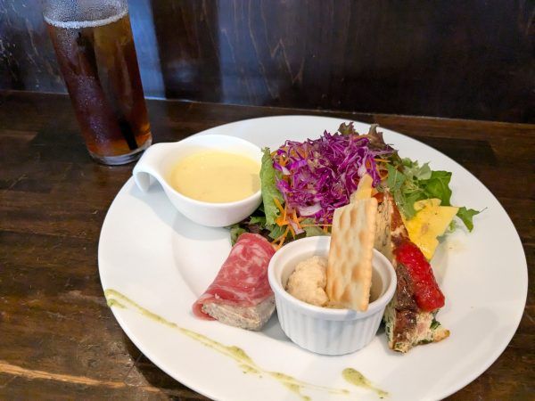 こちらはランチB(パスタメイン)の前菜セット!全て美味しいです。サラダ、ポタージュ、パテ、フリッタータ(イタリアのオムレツ)、クラッカー付きのディップ。2人でシェアしていただきました。
