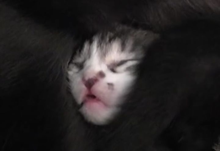 2. 一体どこにいるの?真っ黒な中から顔を出して寝る子猫さん。