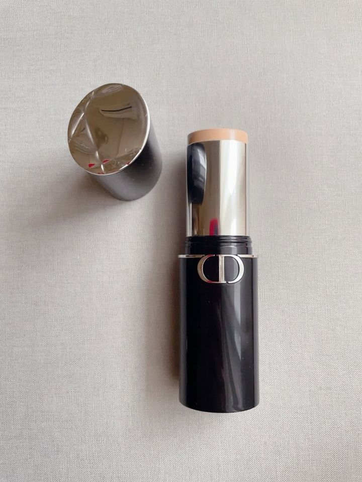 1年中日焼け止めは塗っていますが、とくにこの季節はガンガン紫外線を浴びるし汗もどっさりかくので、肌を守るためどーしてもたっぷりすみずみまで塗らなければなりません。そんな日焼け止めたっぷりの肌の上に、しっかりファンデーションは……乗せたくないですよね。でも、アラフォーともなれば隠したいものもいろいろあるのでカバー力は必要。そこでいま活躍させてているのが、このディオールのスティックファンデーションです。