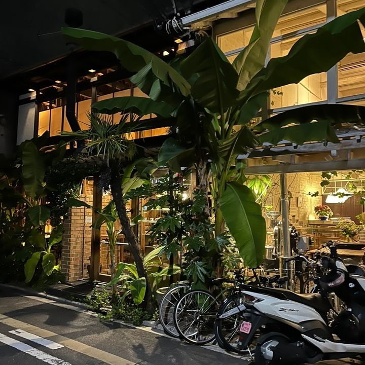 出典:MORE大きな大きなバナナの木が目印のこのカフェは、築150年の町屋をリノベーションした2階建のブックカフェ📚オレンジ系の暖かい光が差し込む居心地の良い空間が広がっています。