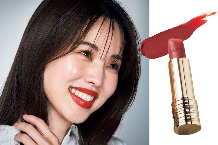 少し朱色がかった赤がカジュアルでオシャレ見え。「顔色は明るい印象、かつクールビューティな仕上がりに」。(神戸さん)