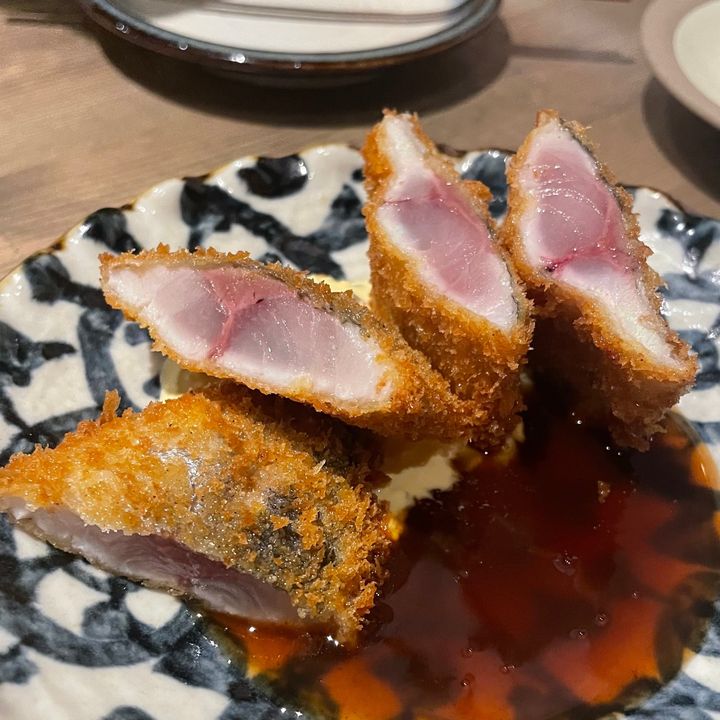 夏はテラス席も/まぐろとさば。