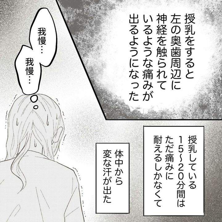 そして今度は、授乳中も歯に激痛が走るようになってしまいました…。授乳タイムが拷問のような時間に。まろさんの表情から、とてもツラい状況が伝わってきます。