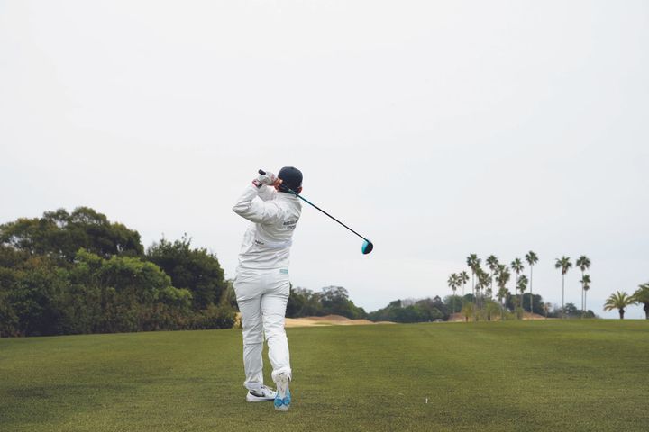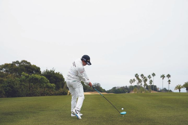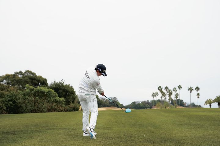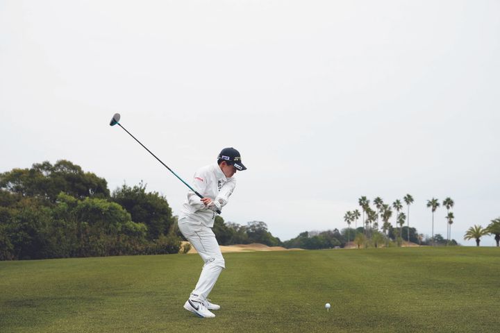 低く上げてコンパクトに振りぬく、飛んで曲がらないとてもシンプルなスイング。低く上げると再現性が高くなりますが、手を使ってしまいがちなので、相当に体幹が強くパワーがないとできません。ですが、まねできる大きなポイントがあります。それは、インパクトまで一貫して胸が開いていないところ。とくに、ボールが捕まらずにスライスしやすい人は、ぜひまねしてみてください。腕や体のローテーションで捕まえに行くのではなく、スイングでボールを捕まえる動きができるようになれば、方向性がアップします。