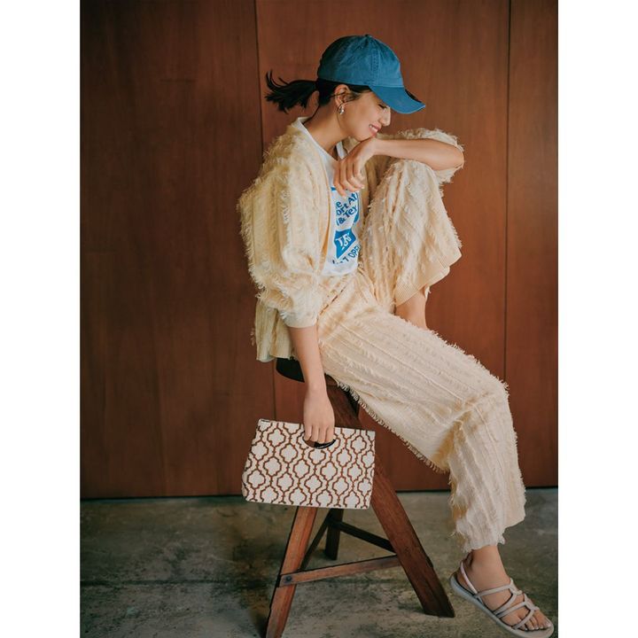 カジュアルになりがちな夏は セットアップで楽ちんきれい。 表情のある素材感がオシャレ
