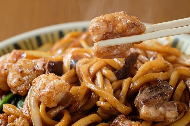 岡山のB級グルメ「ホルモンうどん」