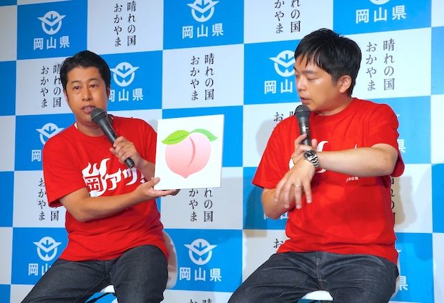 食に関するバトルでは井口さんが桃など岡山県のフルーツを紹介。発表会では先端が尖った桃の絵文字はどちらを上にすべきかについても疑問を提示。X(旧ツイッター)で広く意見を募集したいとキャンペーンの開催を宣言していました(現在は終了しています)。