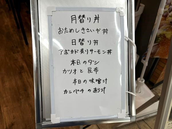こちらのお店の「お味噌汁」と「ダシ」は「日替わり」で、お店の前にあるボードで確認することができます。前回と違うものを味わえると思うと、2回目以降も楽しみがありますね。