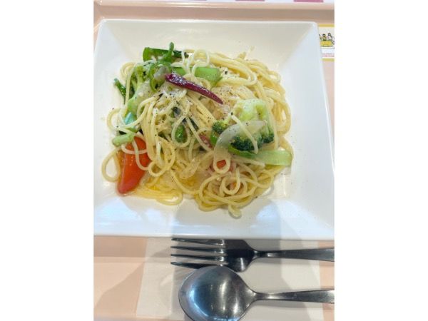 たっぷり野菜のペペロンチーノ 女性やお子様には充分な量ですが、たくさん食べたい方は大盛や特盛もできるそう