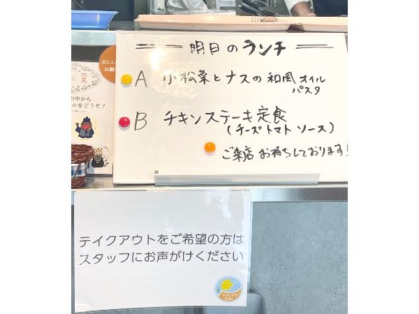 店内の掲示板には「地産地消の野菜」の文字が。千葉県産の野菜を使用しているようですね。地元に根差したレストランです。