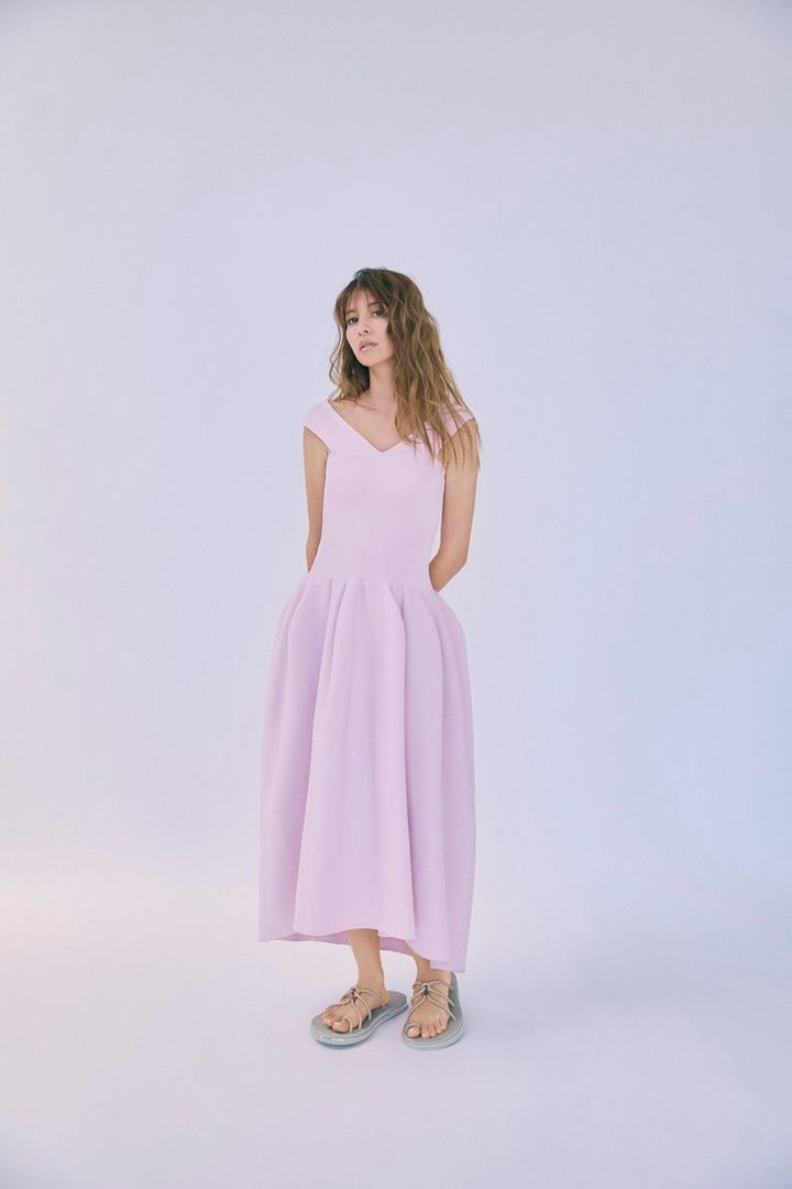 ドレス¥79,200、サンダル¥29,700(共にCFCL/シーエフシーエル オモテサンドウ)