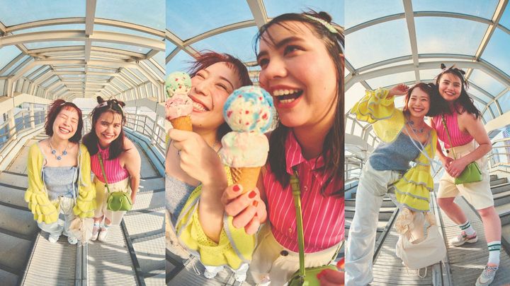 カラフルなアトラクションに負けないパキッとカラーをまとって、浮かれてる感をアピ♥ 全力で楽しみたいから、動きやすさも忘れずに!