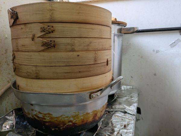 蒸しあがりました~!!(熱くて危険なので、子どもは入れませんが取材のため許可いただいています)