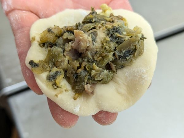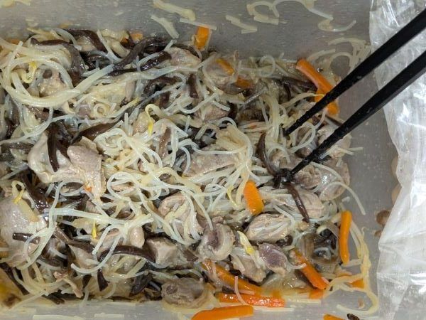 そして今月期間限定の「砂ずりと春雨の冷菜まん」の具。